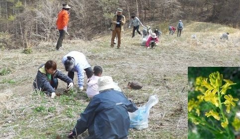 外来種、特に生態系被害防止外来種に指定されているハルザキヤマガラシに関してはGW期間中にイベントとして駆除活動を行っています。