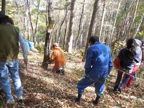 伐り方の講習と、実際にチェンソーを使う体験をしました。
