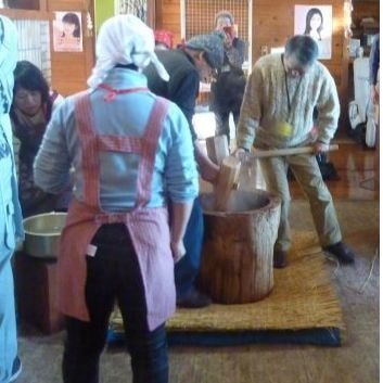おめでとうございます!元日の餅つき大会は、約40名前後の参加者で賑やかに行われます。老若男女がお餅をついて、食べ 会話が弾みます。今年もよろしく!