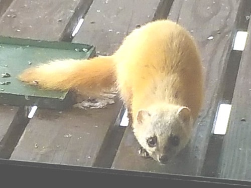 冬毛は、顔が白く身体が黄色できれいです。雑食で夏は動物食、初秋からは植物食が多いそうです。