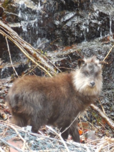 このカモシカは角が小さく(雌雄共角があり、シカのように抜け落ちることがない)顔も短いので、まだ子どものようです。