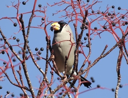 留鳥でカラ類の一種です。これも人懐っこいです。体がオレンジ色なので間違えないです。この種だけの特殊能力として、毒の実を食べます。他のカラ類とは一線を画しています。毒といっても、イチイの果肉だけ、エゴノキの種子だけ食べて毒の部分は食べません。