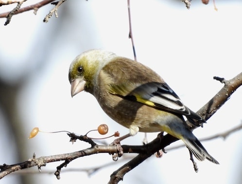 アトリの仲間の多くは基本、秋に到来する冬鳥ですが、イカル、カワラヒワ、マヒワは留鳥です。この仲間は嘴が太いのが特徴です。よく見かける種類です。