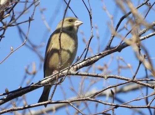 カワラヒワと同様、メスは地味ですが、黒い模様があるので、カワラヒワのメスと区別できます。
