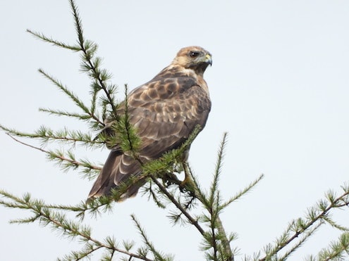 タカの仲間、猛禽類です。トビはなかなか地上におりませんが、ノスリはよく樹木に止まっています。急に飛び立って驚きます。
