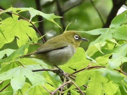ウグイスと間違われる可愛い鳥です。眼の周りの白のリングが名前の由来です。チーチー、と鳴きます。カラ類と行動を共にすることが多いです。