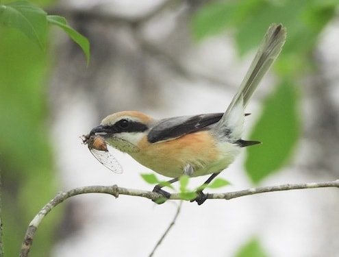 小さいですが、猛禽類です。百舌というくらいなので、色々な声で囀ります。百舌の速贄で獲物を保管しますが、保管した場所を忘れてしまう、とされていました。最近の研究で、繁殖のためのエネルギーとして、この保管食料が必須となることが明らかになっています。