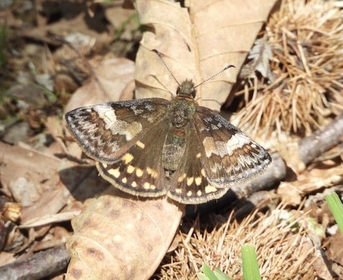 春一番に現れてすぐ消える、スプリングエフェメラル(春の妖精)と呼ばれる動植物の一つです。オスと比して、メスの前翅の白い帯がはっきりしています。