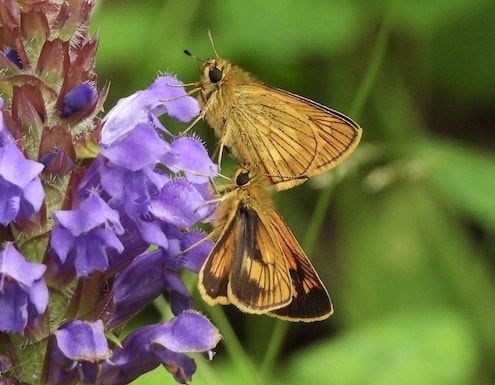 翅を閉じた個体と開いた個体を同時に撮影できました。ウツボグサには必ずこの蝶が