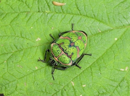 これも大きなカメムシです。金縁に緑の光沢の亀の甲模様が綺麗です。森の宝石といわれています。