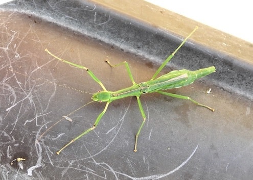 いわゆる、普通のキリギリスです。トゲ が長いですが、産卵管です。