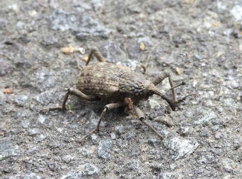 道の上を普通に歩いています。体長は2cm以上あります。口吻が長く、象です。