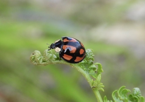 普通のテントウムシです。背中の模様は、多岐に渡っていても同じ種です。