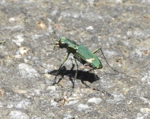 オサムシ科でハンミョウ の仲間です。立ち上がった姿が猫のよう、が由来です。この個体は、ニワハンミョウ にしては色が鮮やかです。