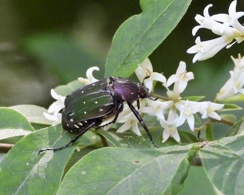 コガネムシの仲間です。ハナムグリは花潜りという意味です。光沢が無い分、保護色になっている様です。
