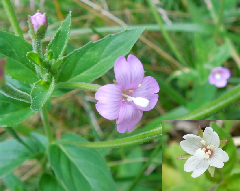 アカバナ科 15〜90㎝ 里~山地~亜高山の湿地。アカバナの名は紅葉にちなむ。 右:白花